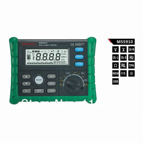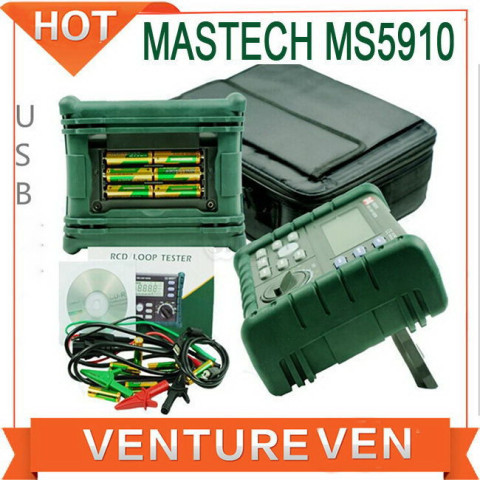 دستگاه تستر RCD / LOOP دیجیتالی پرتابل و قابل حمل با قابلیت اتصال به کامپیوتر ، ساخت کمپانی معتبر مستیچ مدل MASTECH MS5910 Professional GFCI Tester Circuit Trip-out Current/Time Test RCD/Loop Resistance Meter with USB Interface