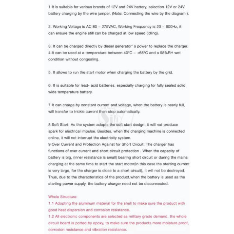 ویژگی‌های باتری شارژر ژنراتوریSHALUO: