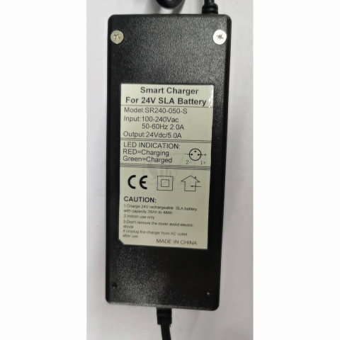 شارژر مدل SR240-050-S دارای ورودی 220 ولت و میانگین خروجی 5 آمپر و خاموش شدن خودکار هنگامی که باتری شارژ شده باشد یا سلولهای باتری کشش شارژ نداشته باشند.