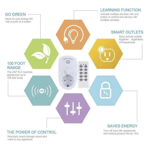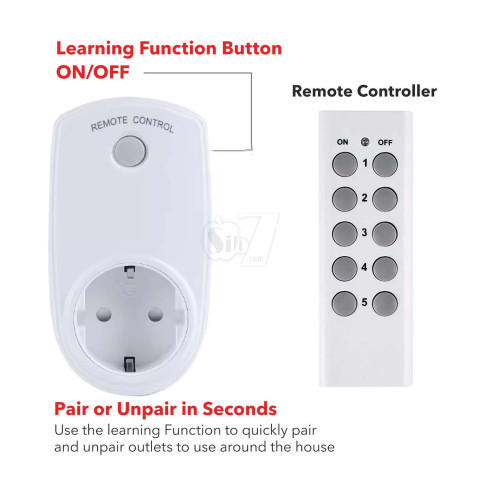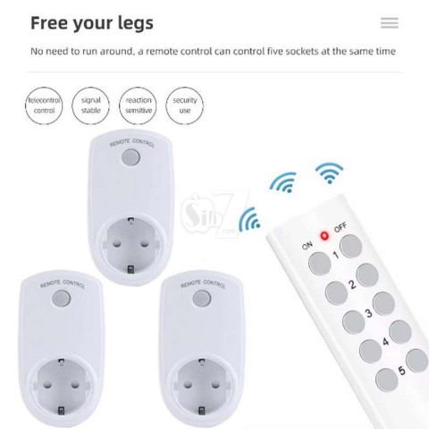 بوسیله این پریز ریموت دار معرفی شده سیب هفت می توانید برق وسیله الکتریکی که به هر کدام از این پریزها متصل کرده اید را توسط ریموت کنترل بصورت جداگانه و با انتخاب دلخواه قطع یا وصل کنید و امتیاز این ریموت بهره گیری از امواج رادیویی میباشد که امکان این کنترل را حتی از پشت دیوار یا مانع نیز میدهد.
