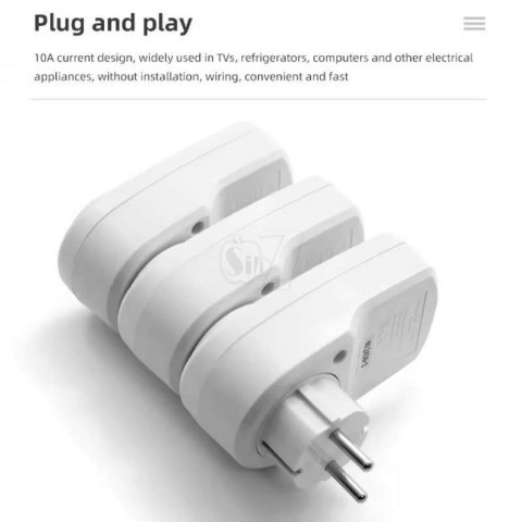 میتوانید بوسیله سه راهی چندین وسیله و لوازم برقی را به هر پریز وصل کنید (مجموع پیک یا اوج وات مصرفی آنها نباید بیشتر از 10 آمپر یا 2200 وات باشد) و در مجموع جریان چندین کالای برقی مثل لامپ را با این پریزها و 1 ریموت بصورت گروهی مدیریت کنید.