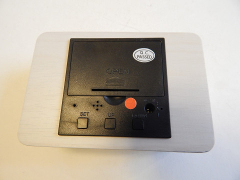 ولی زمانیکه آنرا به برق وصل کنید یا باطری در داخل آن قرار دهید روی همان چوب مسطح یک ساعت دیجیتالی بزرگ شروع به خودنمایی می کند