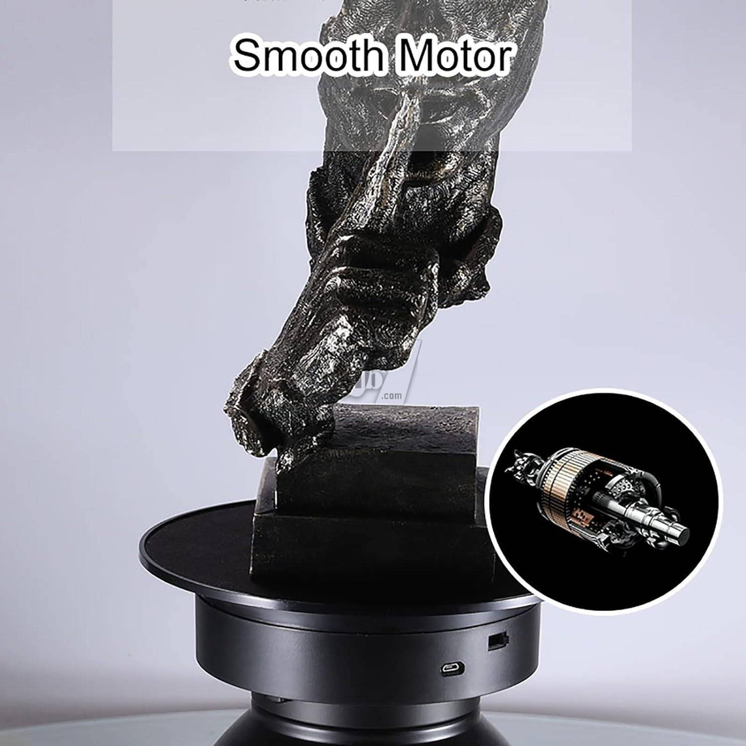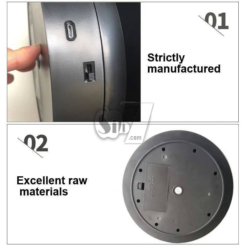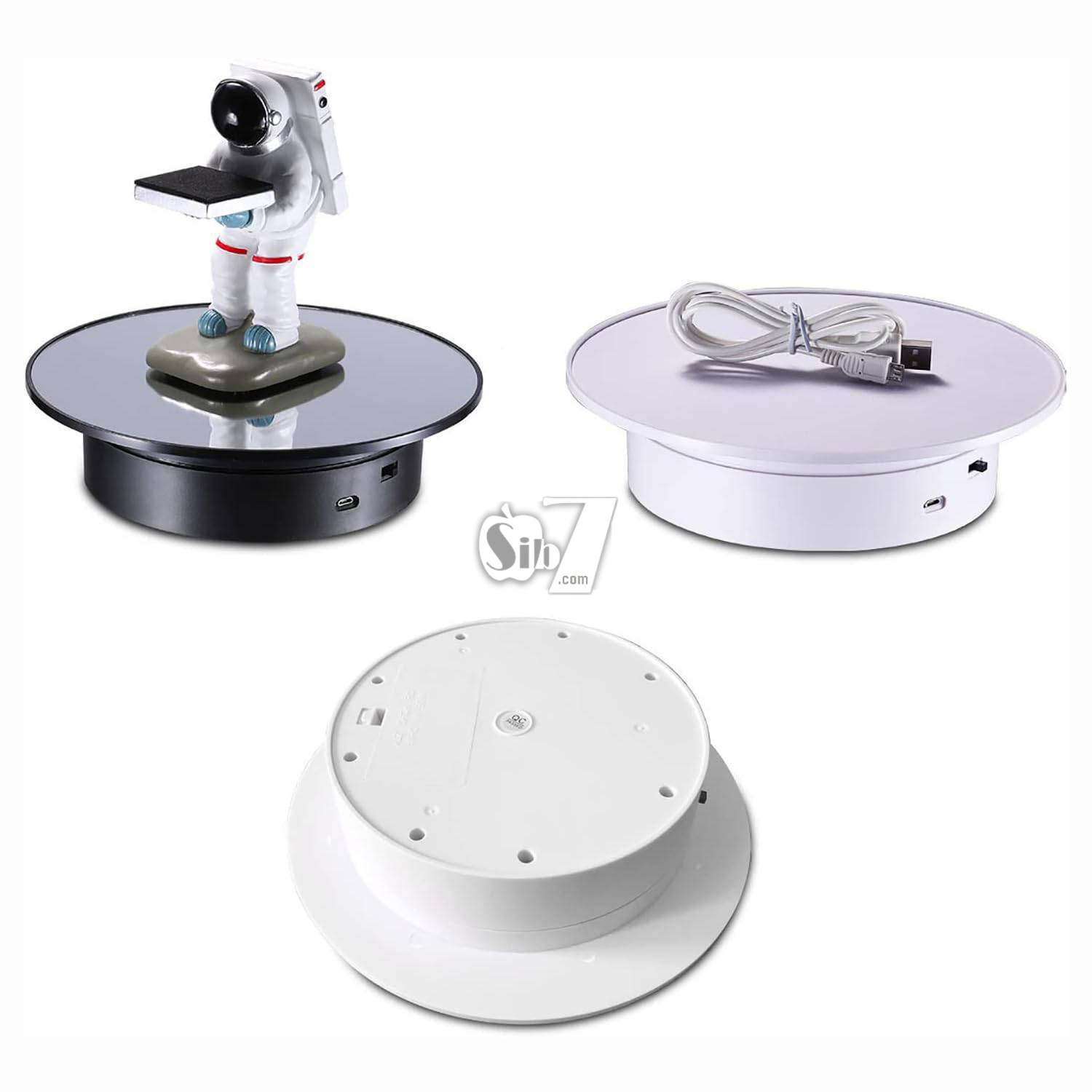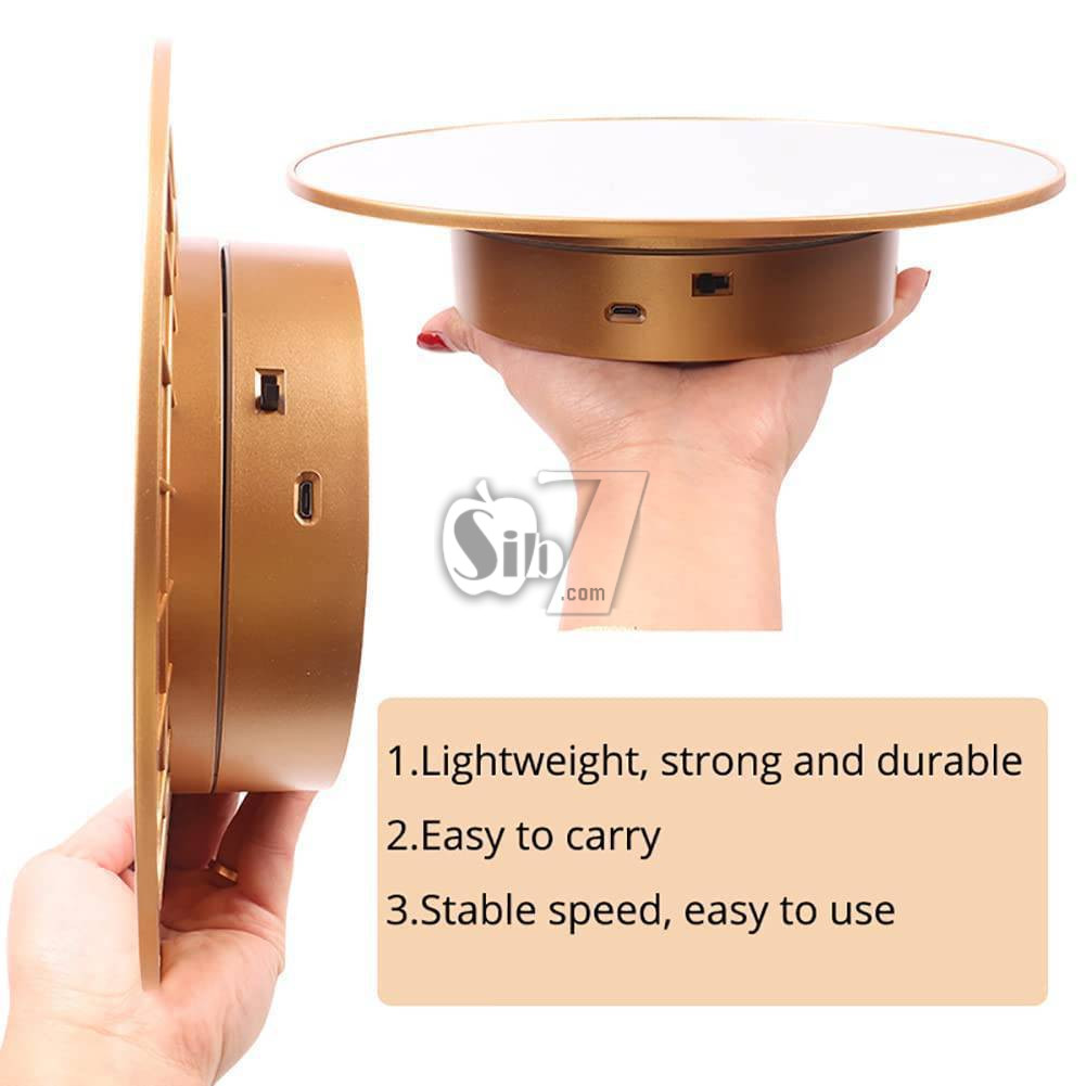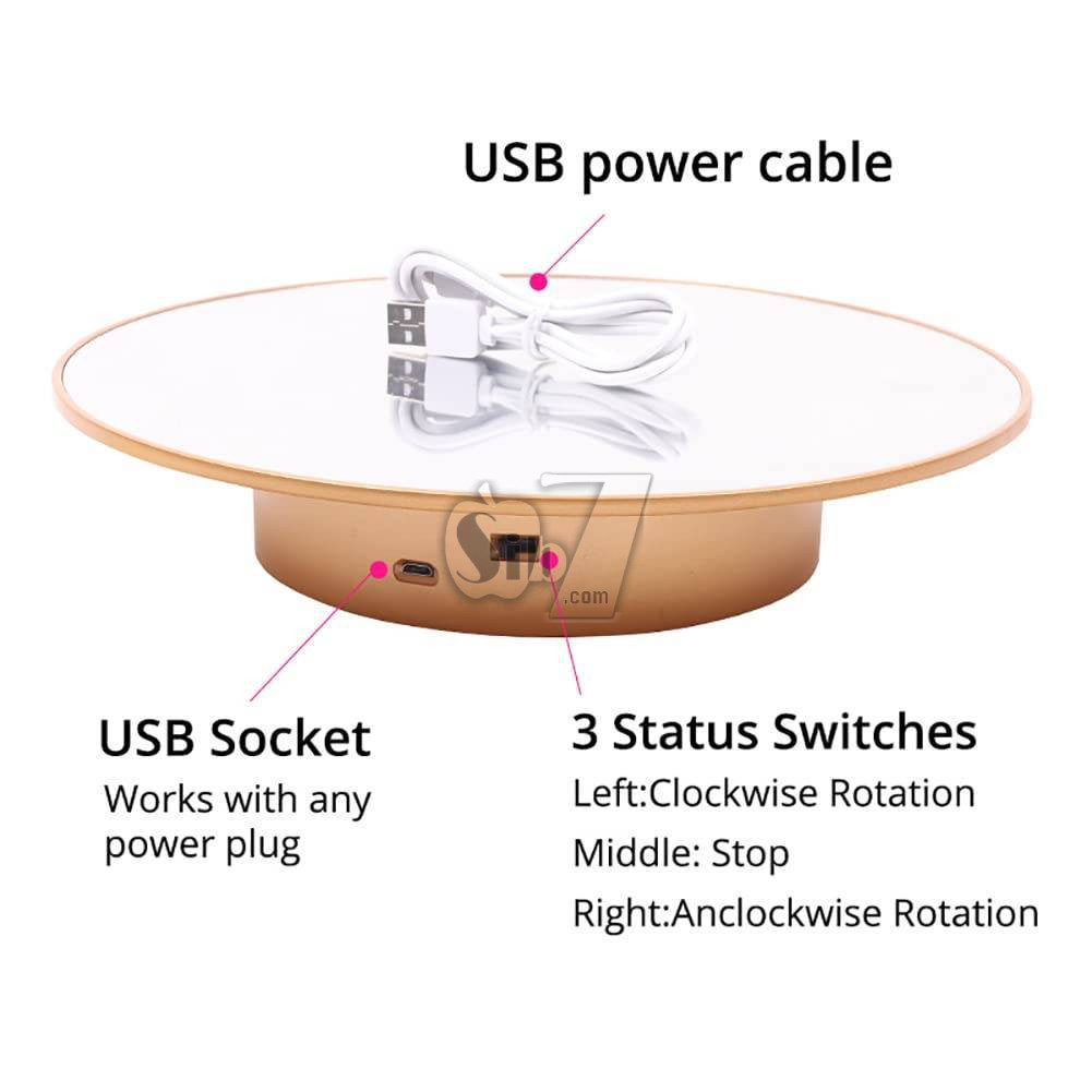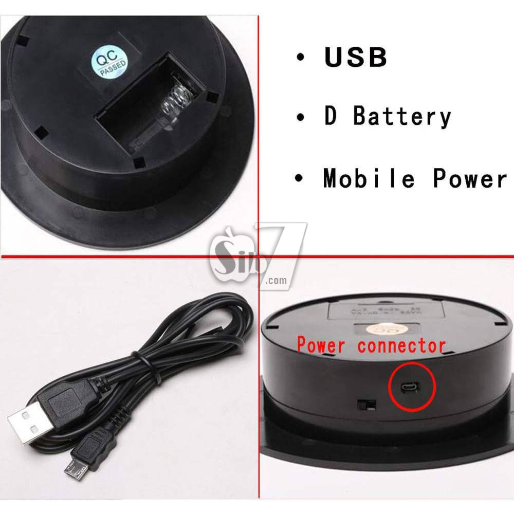 استفاده راحت و آسان، کابل USB را به آداپتور USB یا شارژر موبایل یا پاوربانک یا هر منبع با خروجی USB وصل کنید و وسیله موردنظر را روی پنل چرخشی بگذارید و شاهد چرخش و نمایش آن باشید، یا می توانید با قرار دادن 1 عدد باتری سایز D در محفظه زیرین آن بوسیله باتری نیز آنرا به چرخش دربیاورید.
