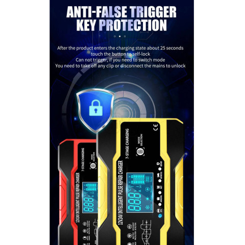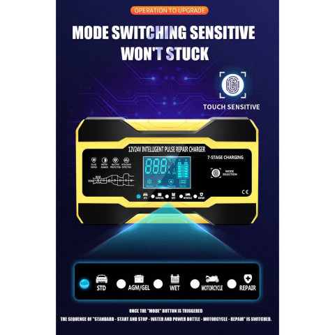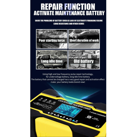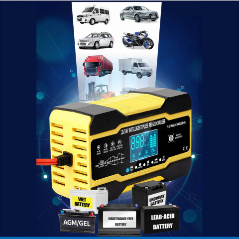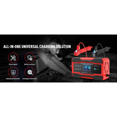 Ruijie RJ-C121001A Intelligent 12V and 24V AGM GEL WET Pulse Repair Lead Acid Automatic Battery Charger