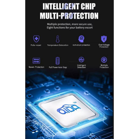 این دستگاه بصورت اتوماتیک با شارژ هوشمند و آمپر متغیر هنگام پر شدن باطری آمپر خروجی را بصورت اتوماتیک کم می کند و بدین وسیله مانع از شارژ شدن بیش از حد (اورشارژ Over Charge) و آسیب رسیدن و کم شدن عمر باطری میشود.