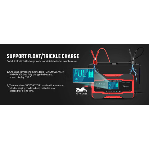 این حالت برای قابلیت شارژ معلق یا دائم وصل و طولانی مدت جهت نگهداری دائمی انرژی باطری در حداکثر انرژی نیز استفاده میشود که اصطلاحا به حالت Trickle نیز معروف است، هنگامی که شارژر در حالت Trickle قرار دارد، ولتاژ باتری را کنترل می کند، یعنی پس از کاهش ولتاژ به زیر 12.5 ولت، شارژر به طور خودکار دوباره روشن می شود و آن را کامل شارژ می کند و ولتاژ را در حالت عادی حفظ می کند.
