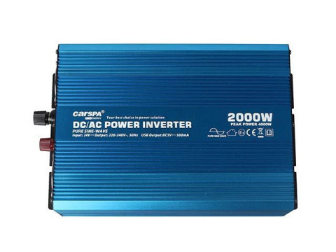 تبدیل برق انواع باطری (12 یا 24 یا 48 ولت) به برق 220 ولت (برق شهری) با موج سینوسی خالص برند Carspa سری P با کیفیت عالی و در توانهای مختلف (از 300 الی 4000 وات قابل انتخاب در سیب هفت)