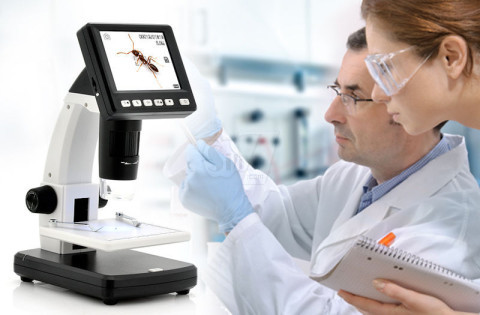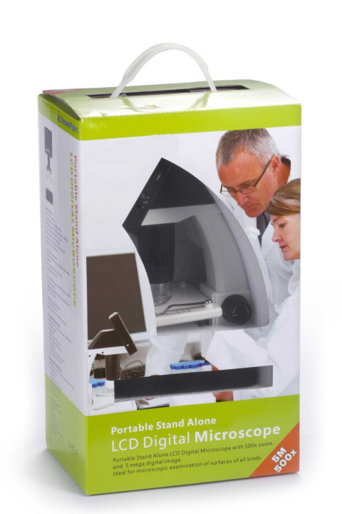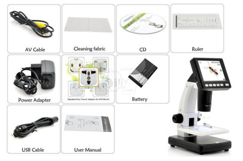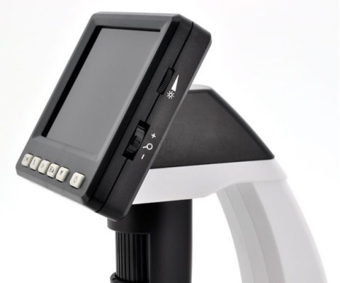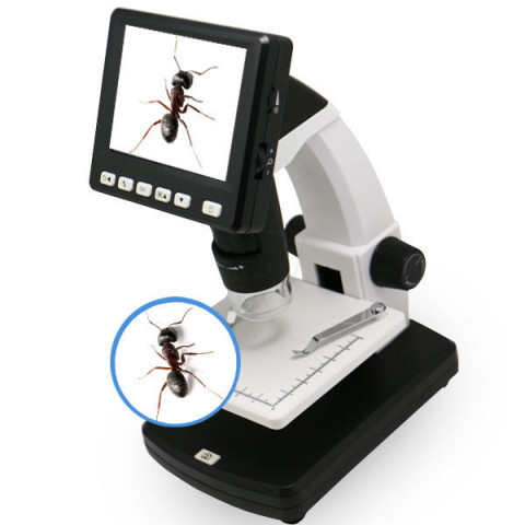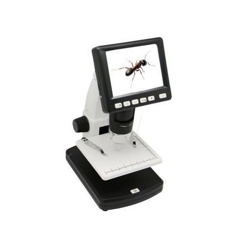 میکروسکوپ مانیتوری USB شارژی دارای صفحه نمایش LCD در اندازه 3.5 اینچی با قابلیت بزرگنمائی و زوم تا 500X ، قابلیت ذخیره تصویر سوژه (نمونه ای که زیر لنز میکروسکوپ میباشد) بر روی حافظه SD مموری و دارای 8 لامپ LED قوی