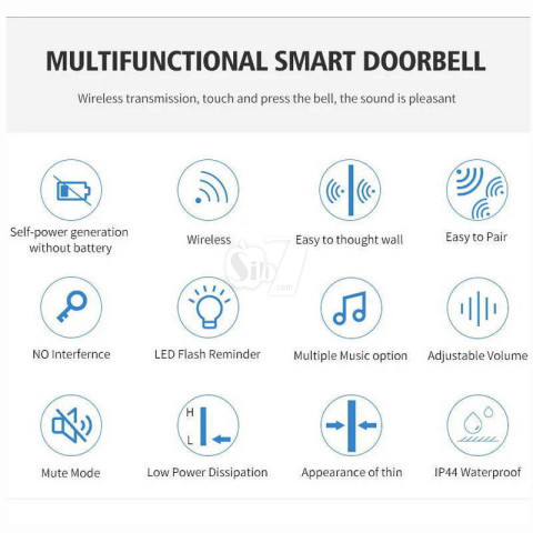 2T193 Self Generating Power Wireless Doorbell, Self powered and No Battery Required