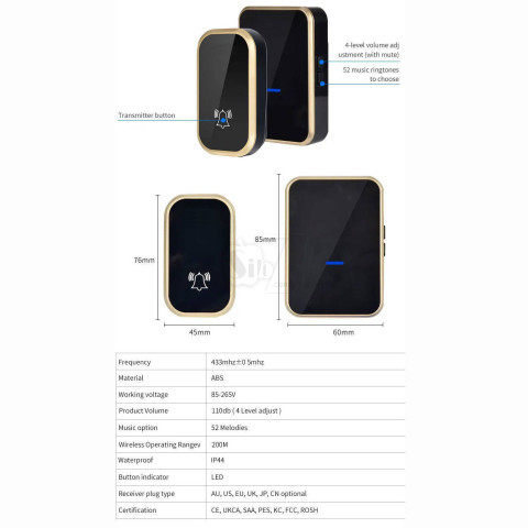 فرکانس کدینگ و رمزگذاری (تضمین عدم تداخل با ساير زنگ های بیسیم اطراف، حتی مدل مشابه)
