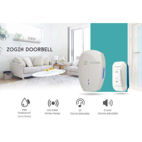 Zogin B1-27-WW wireless Digital Door Chime and Self Powered Smart Doorbell