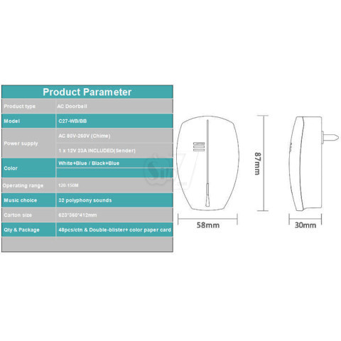 بسته بندی زنگ وایرلس زوگین بی1-27 سفید: