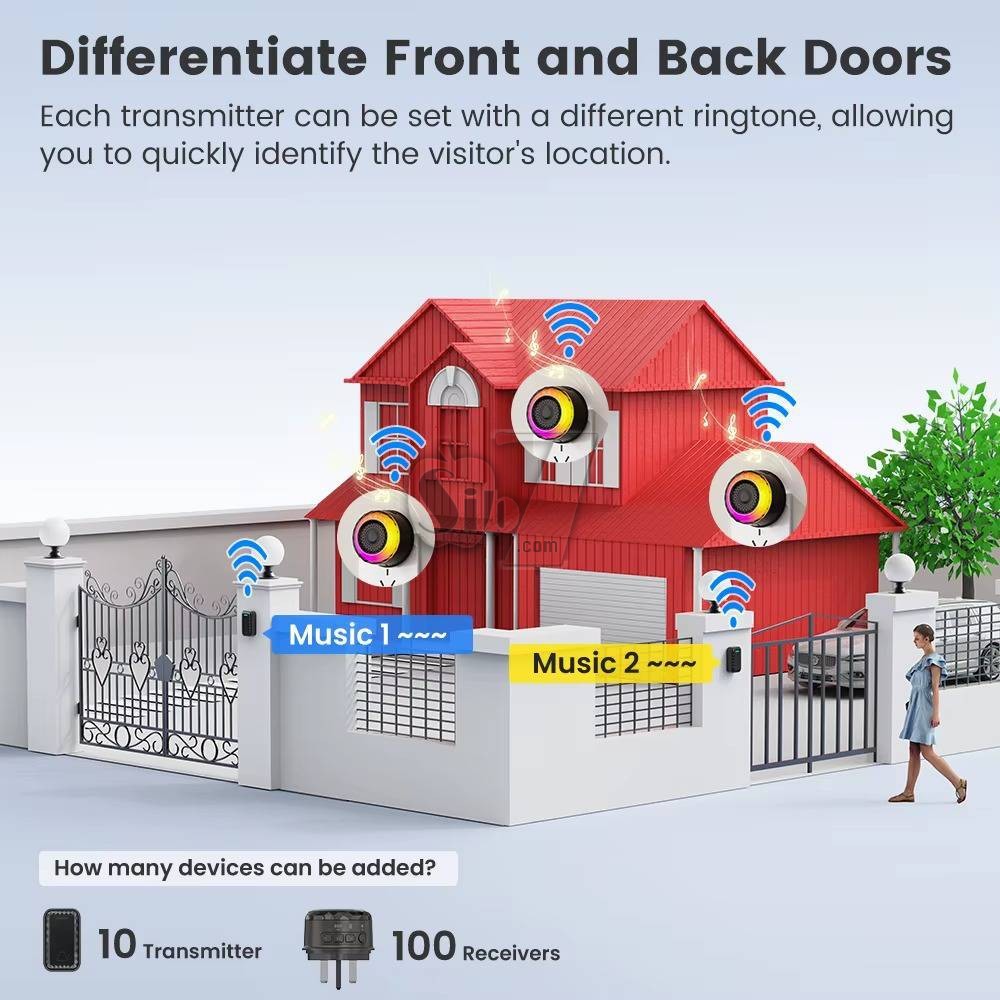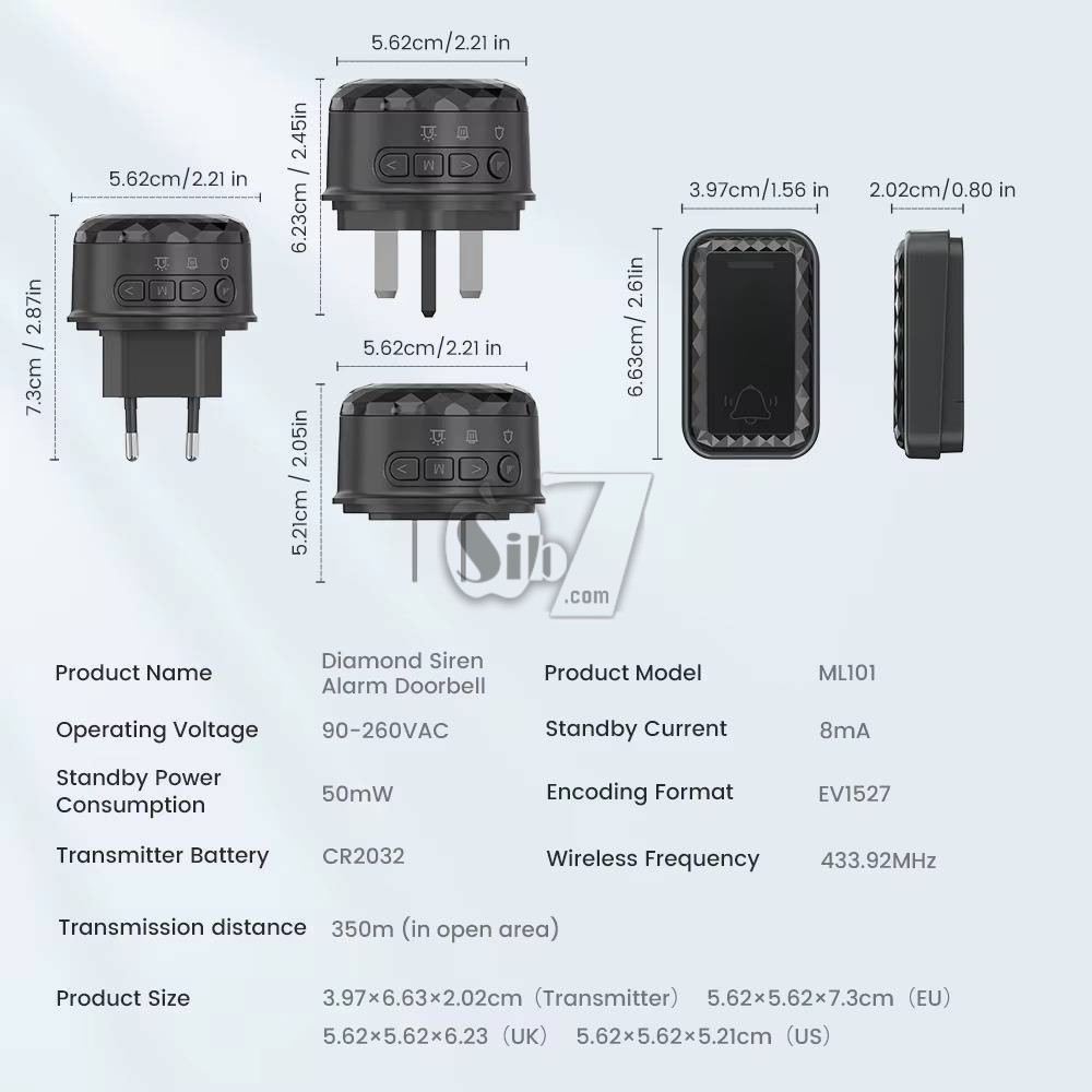 ML101 or CH131 Black Color 2 Transmitter Wireless Diamond Siren Alarm Doorbell