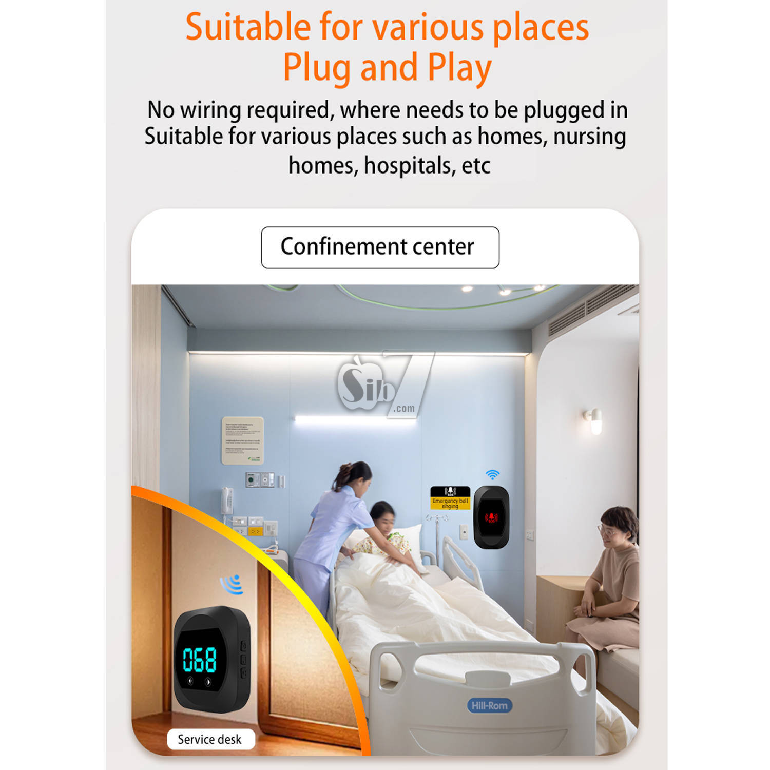 قابلیت استفاده برای بیمارستان، کلینیک، آزمایشگاه، مراکز درمانی، آسایشگاه سالمندان، خانه های سلامت، گارسون رستوران، کافی شاپ، فست فود و اغذیه فروشی ها، باغچه رستوران ها و قهوه خانه های سنتی، اداره و ارگان، شرکت و دفاتر، فروشگاه و سوپرمارکت و هایپر مارکت ها و هر مکان دیگری که چندین نفر بخواهند یک نفر ثابت که در محدوده برد دستگاه است را احضار کنند، مثلا کارمندان یک اداره یا شرکت میتوانند هر لحظه که نیاز داشتند آبدارچی یا منشی یا نگهبان شرکت را در صورتیکه در نزدیکی بخش زنگ باشد احضار کنند. یا مریض های یک خانه یا بخش بیمارستان میتوانند در مواقع ضروری سرپرستار یا پرستاری که در استیشن و مرکز پرستاری نشسته است را احضار کنند.