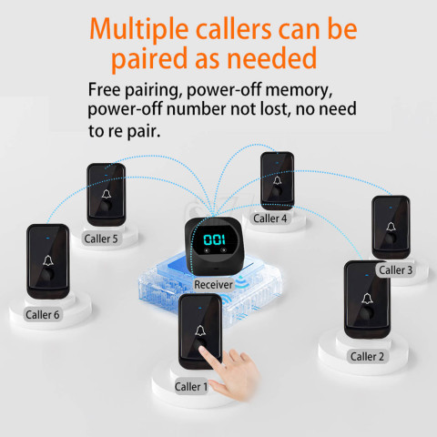 با این نرس کال کوچک چندین نفر (تا 99 نفر) می توانند پرستار یا کارمند و مسئولی که در اتاق خود و در محدوده برد دستگاه است را احضار کنند.