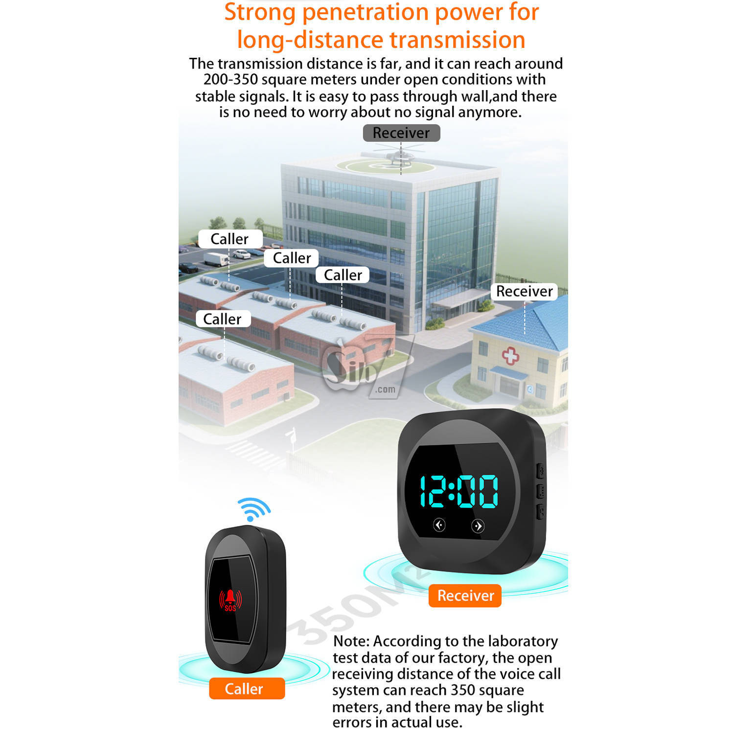 با این نرس کال کوچک چندین نفر (تا 99 نفر) می توانند پرستار یا کارمند و مسئولی که در اتاق خود و در محدوده برد دستگاه است را احضار کنند.