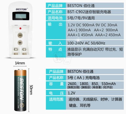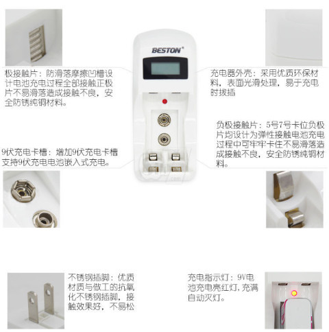 BESTON BST-C902 Speed Electrical impulse Smart Battery Automatic Charger with LCD for AA, AAA, 9V Rechargeable Battery