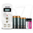 دارای 2 جایگاه باطری قلمی یا نیم قلمی که میتوانید انرژی 1 یا 2 عدد باطری AA یا AAA (حتی بصورت ترکیبی) را توسط این شارژر پر کنید، و یک جایگاه مخصوص باطری 9 ولت کتابی.
