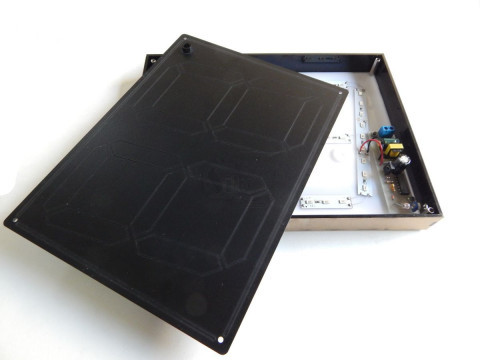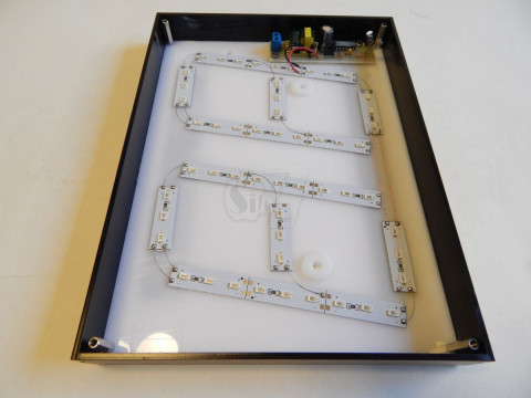 قاب تابلوی پلاک چراغدار بزرگ در اندازه 18*24 سانتیمتری دارای فتوسل و سنسور نوری با حساسیت قابل تنظیم جهت خاموش شدن اتوماتیک هنگام روز و دارای 54 لامپ SMD فوق کم مصرف و بادوام