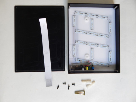 6-رویه اصلی (رویه اعداد) را بوسیله پیچ های موجود در بسته بندی بر روی قاب محکم ببندید.موقع گذاشتن قاب دقت کنید که سوراخ مخصوص فتوسل (طلق کوچک دایره ای شکل گوشه طلق) در ضلع درست خود یعنی بر روی حسگر نور (سنسوری که روی مدار بر روی 2 پایه قرار گرفته است) قرار بگیرد. یعنی حتما سنسور دید به بیرون داشته باشد.