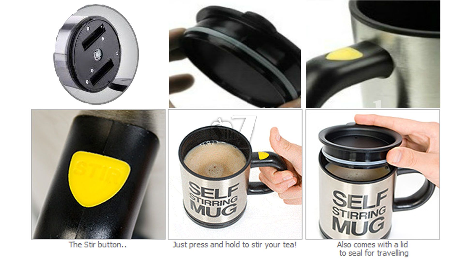 کافیست در پوش زیر لیوان را بچرخانید تا باز شود سپس 2 باتری نیمه قلمی در داخل جایگاه باتری قرار دهید ، اگر باتری ها پر باشد و درست قرار داده باشید با فشار دادن دکمه زرد رنگ (STIR) روی دسته پره و ملخ داخل لیوان به سرعت خواهد چرخید.