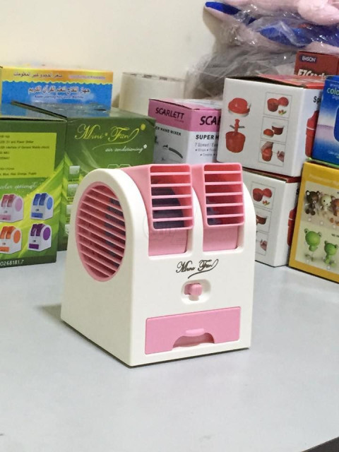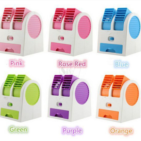 یکی از کوچکترین کولرهای آبی قابل استفاده بصورت پرتابل یا بر روی میز دارای 2 دریچه خروجی مستقل قابل تنظیم و محفظه مخصوص یخ یا آب خیلی خنک با قابلیت کارکرد بوسیله 3 عدد باتری قلمی یا برق پورت USB (یا آداپتورUSB) مخصوص روی میز و فضاهای خیلی کوچک