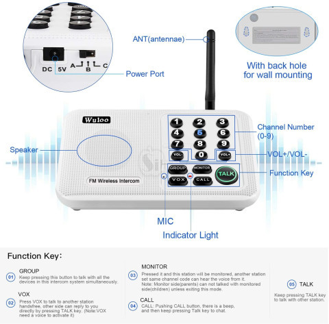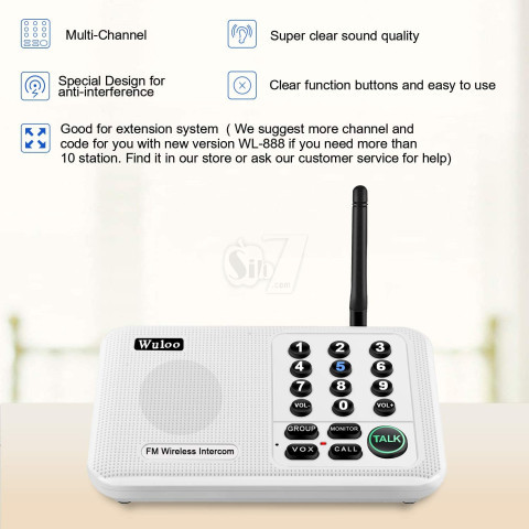 Wuloo WL-666 Wireless Home Intercoms System 10 Channel 5280 Feet Range