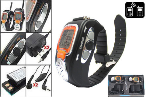 یک جفت ساعت مچی بسیار زیبا با قابلیت مکالمه بصورت بی سیم با برد حدود 500 متر و آنتن ضد نویز وبهره گیری از فرکانس مجاز UHF مجاز با میکروفون داخلی، در جعبه ای شیک و لوکس با لوازم کامل.