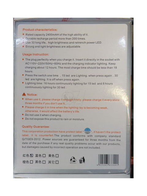 جوابدهی و مدت نوردهی : با هر بار شارژ کامل در حدود 16 ساعت در حالت 15 لامپی و در حدود 8 ساعت در حالت 30 لامپی بصورت مداوم نوردهی خواهد داشت.