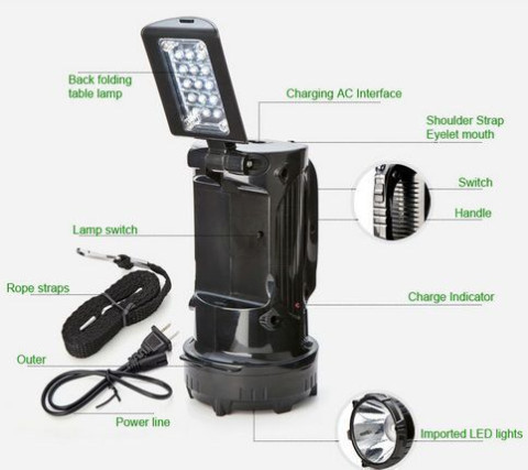 چراغ قوه شارژی 2 حالته یک واتی با 1 لامپLED  فوق کم مصرف برای چراغ قوه و 15 لامپ LED برای بخش چراغ مطالعه ، ساخت کمپانی DP  با طول عمر طولانی لامپ (حداقل 10 سال) و دارای 1 سال گارانتی و ضمانت