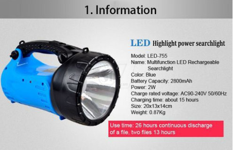 DP LED755 Searchlight 2w Emergency Light LED Portable Best Handheld Spotlight New Style LED Flashlight Camping Rechargeable Lamp