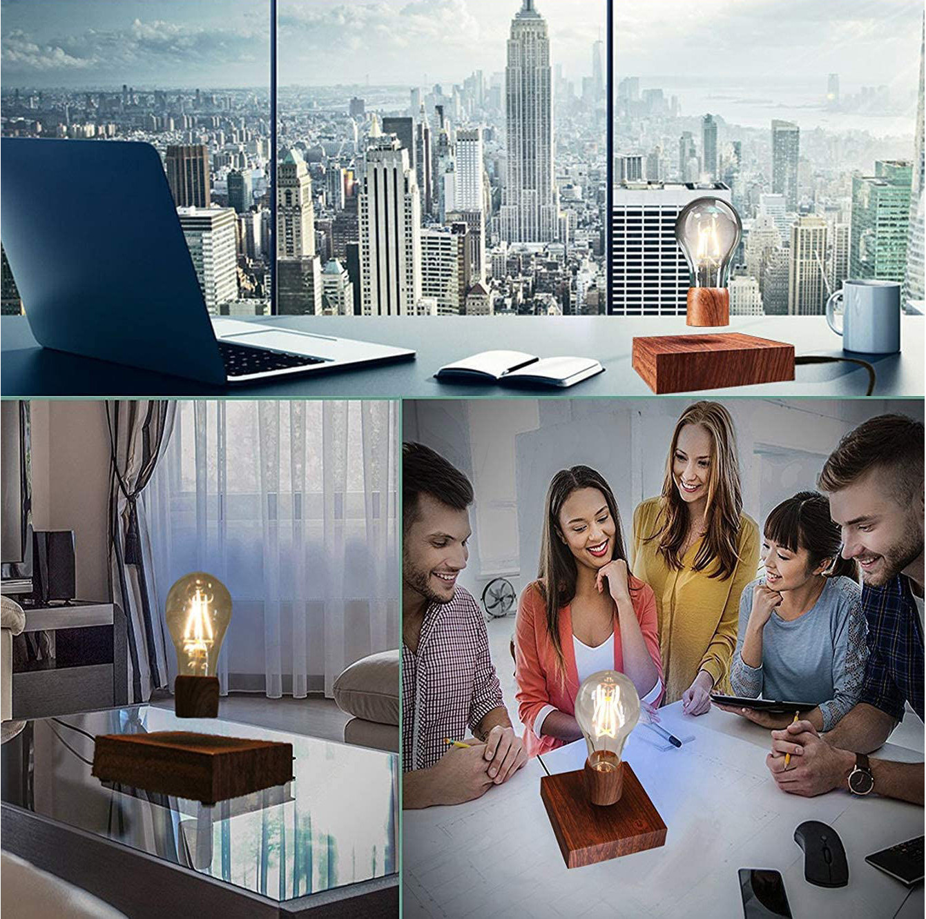 لامپ شگفت انگیر معلق در هوا توسط انرژی مغناطیسی ایجاد شده توسط پایه طرح چوبی