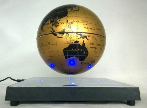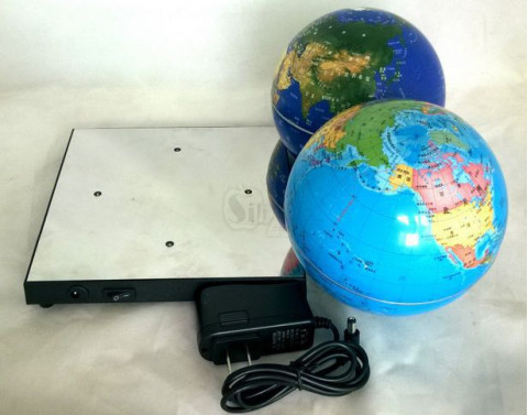 حاشیه :یکی از خریداران طرح جالبی بوسیله این کالا انجام داده بود که نتیجه آن خیلی جالب و دیدنی شده بود به این صورت که پایه را داخل سطح میز جاسازی کرده بود و سطح پایه تقریبا با سطح میز هم سطح شده بود و رویه آنرا فیبر چوبی نازکی کشیده بود طوری که پایه معلوم نبود و زمانی که کره را در موقعیت خود قرار می داد هر کسی آنرا میدید تصور یک کالای عجیب را داشت چون بدون آنکه پایه ای دیده شود کره زمین با فاصله 1 سانتیمتری از روی میز روی هوا در حال چرخیدن بود و برای اثبات در هوا بودن کره از زیر آن کاغذ رد میکرد و تعجب در چهره بیننده کاملا معلوم بود. (البته اجرای این طرح نیاز به علاقه و حوصله و ابزار و امکانات دارد).