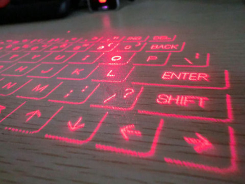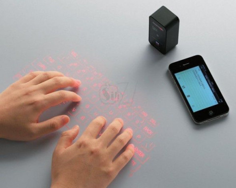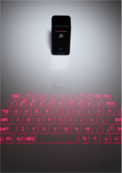 صفحه کلید شگفت انگیز لیزری با قابلیت تاباندن شکلک های حروف صفحه کلید بصورت پروژکتوری بر روی هر سطح صاف و قابلیت تایپ با اشاره به روی آیکن های حروف