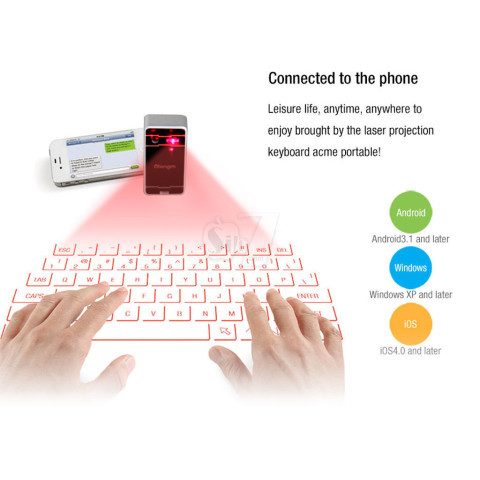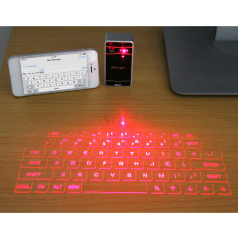 صفحه کلید شگفت انگیز لیزری با قابلیت تاباندن شکلک های حروف صفحه کلید بصورت پروژکتوری بر روی هر سطح صاف و قابلیت تایپ با اشاره به روی آیکن های حروف فقط...