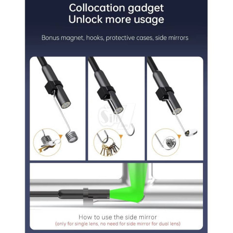 این گجت جالب معرفی شده توسط سیب هفت مناسب برای بازدید و مشاهده نقاطی که دسترسی به آنها سخت است، مثل لوله، چاه، سوراخ، زیر آب، داخل دیوارهای کاذب و داکت و سقف کاذب، معادن و غیره و انواع مکانها و کاربردهای گوناگون مثل بررسی لوله های فاضلاب، زوایای مخفی، داخلی موتور ماشین، بررسی بازماندگان زیر آوار زلزله و سیل و طوفان، بررسی داخل بسته بندی ها و پالت ها در گمرک، باستان شناسی، غارنوردی، زیست شناسی و تحقیق در مورد لانه پرندگان یا موجودات زیر زمینی، بررسی مدارهای داخل دستگاههای صنعتی بدون باز کردن بدنه و جعبه، پیدا کردن زوایای ضدسلامتی و کثیف خانه یا محل کار و لانه اصلی حیوانات موذی خانگی مثل موش، صنایع هوا فضا، صنایع کشتی و خودروسازی کوچک، حفاری، دیگهای بخار متالوژی، صنایع ساخت و ساز و عمران، ناظرین و کارشناسهای تائید استاندارد عمرانی و صنعتی و تعمیرکاران کولرگازی و .. و بیشتر اشخاص و جاهایی که نیاز به دیدن فضایی غیرقابل دسترس دارند.
