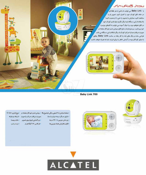 ست کامل دوربین و مانیتور وایرلس Alcatel دارای ضمانت 1 ساله ، با برد 200 متر با ارتباط صوتی و مکالمه دوطرفه ، لامپ IR دید در شب ، آلارم و هشدار دما ، صفحه نمایش 2.8 اینچی و همچنین زوم کردن و چرخاندن و تغییر زاویه دوربین بوسیله کنترلر مانیتور ، به همراه سنسور حرکت و صدا برای روشن کردن اتوماتیک مانیتور هنگام وجود حرکت یا صدا در محدوده دوربین و چندین امتیاز و ویژگی جالب دیگر ، همه و همه در دوربین مراقبت بچه بیسیم آلکاتل بی بی لینک700