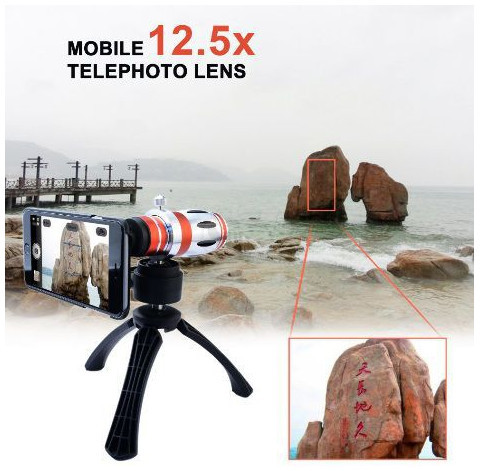 Aluminum metal 12.5x Zoom mobile phone telephoto lens with tripod and Pouch