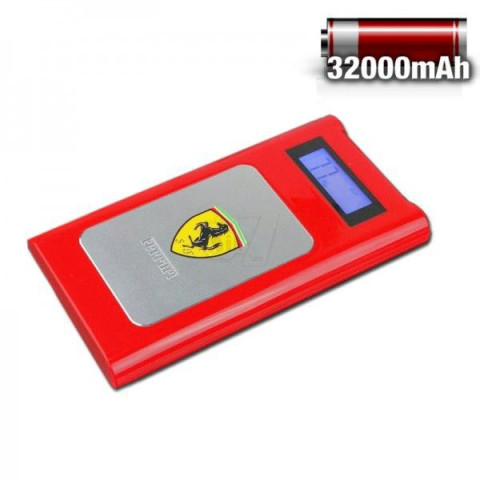 یکی از قویترین پاور بانک ها و شارژهای همراه بسیار قوی 32هزار میلی آمپر بسیار زیبای Ferrari دارای چراغ قوه LED و صفحه نمایش LCD با نشان دادن میزان شارژ و میزان باطری داخلی بصورت عددی و آیکنی و دارای سیستم کنترل حفاظتی هوشمند جدید جهت جلوگیری از آسیب های الکتریکی و نوسانی باتری ، با قابلیت ذخیره سازی انرژی با پورت USB