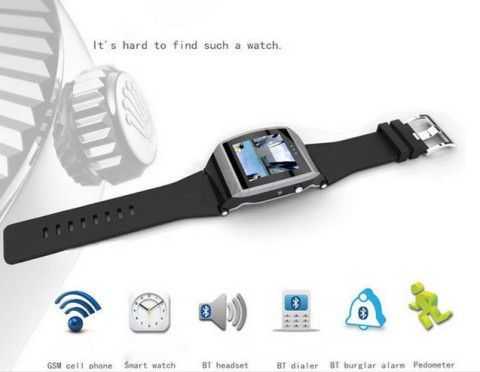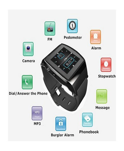 گوشی موبایلی به شکل ساعت مچی زیبا با تمامی امکانات یک گوشی موبایل کامل که با آن می توانید به  انجام تماس های تلفنی ، ارسال پیامک ، گوش دادن به موسیقی   و ارسال و یا دریافت فایل با بلوتوث... بپردازید .