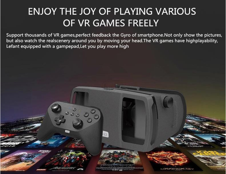 Lefant VR 30 Adjustable Virtual Reality Immersive 3D Glass Headset + Bluetooth Handheld Gamepad Controller