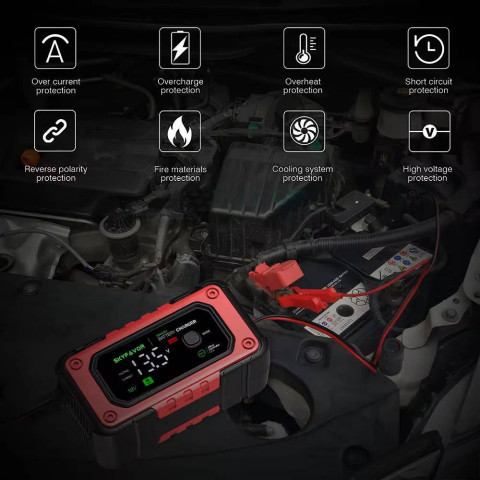 SkyFavor FBC1207E Latest motorcycle car battery charger 12V 7A fast lead acid and lifepo4 Universal 12 volt battery charger for 4AH-120AH battery
