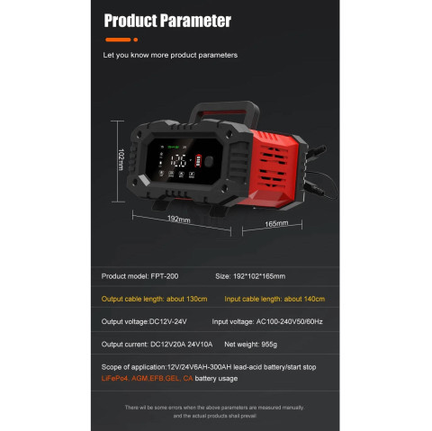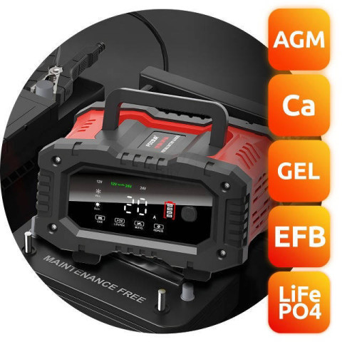 Foxsur FPT-200 20A-10A 12V-24V Smart Battery Charger For Car Motorcycle Battery Repair Auto Moto Lead Acid AGM Lithium LiFePo4 Batteries This is a fully...