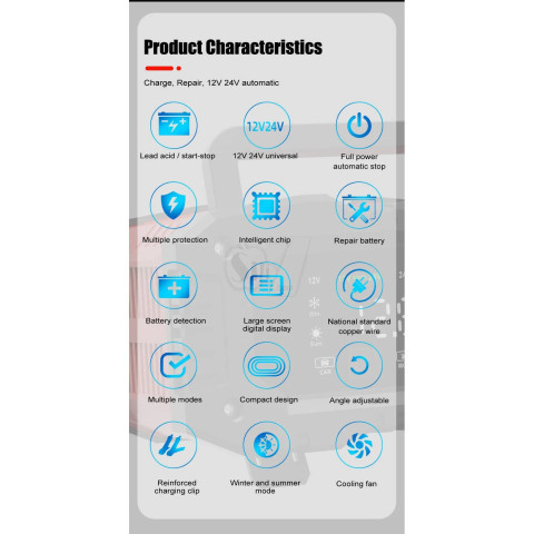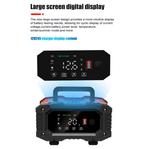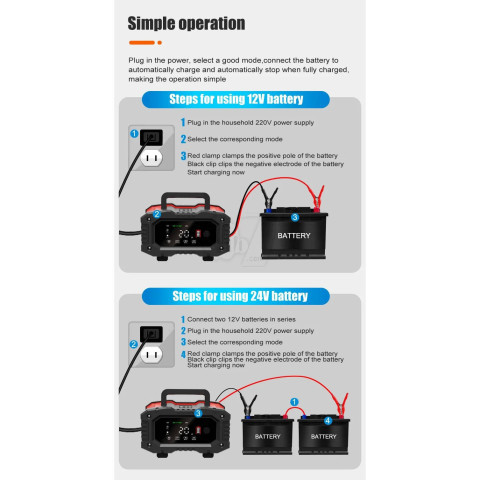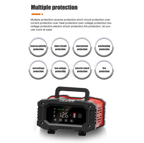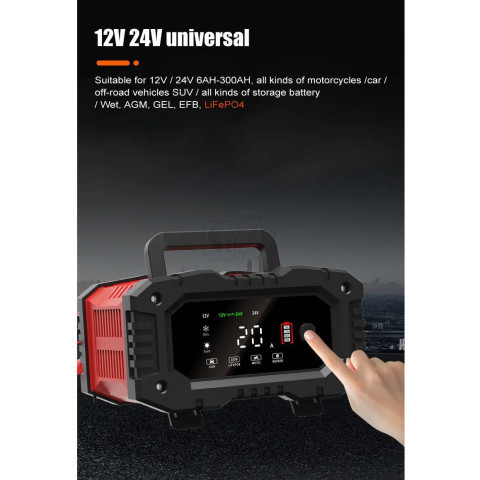 Types of batteries: Most types of lead acid batteries including Calcium, Gel AGM, Wet, LiFePO4,lead Acid, etc.