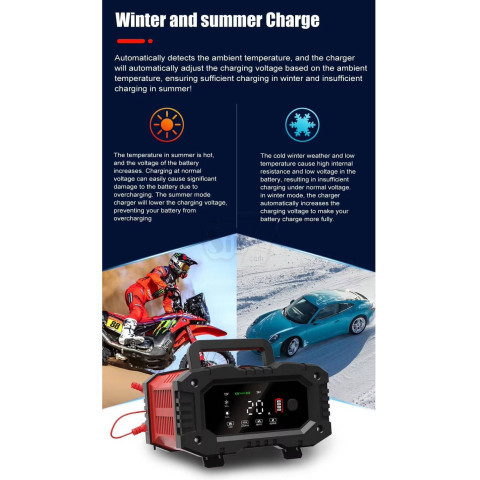 7-stage chargers are suitable for most battery types including Calcium, Gel AGM, Wet,LiFePO4, lead Acid batteries.