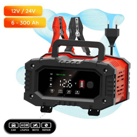 The charger is designed for 12V and 24V Lead-Acid, LiFePo4 ect. batteries