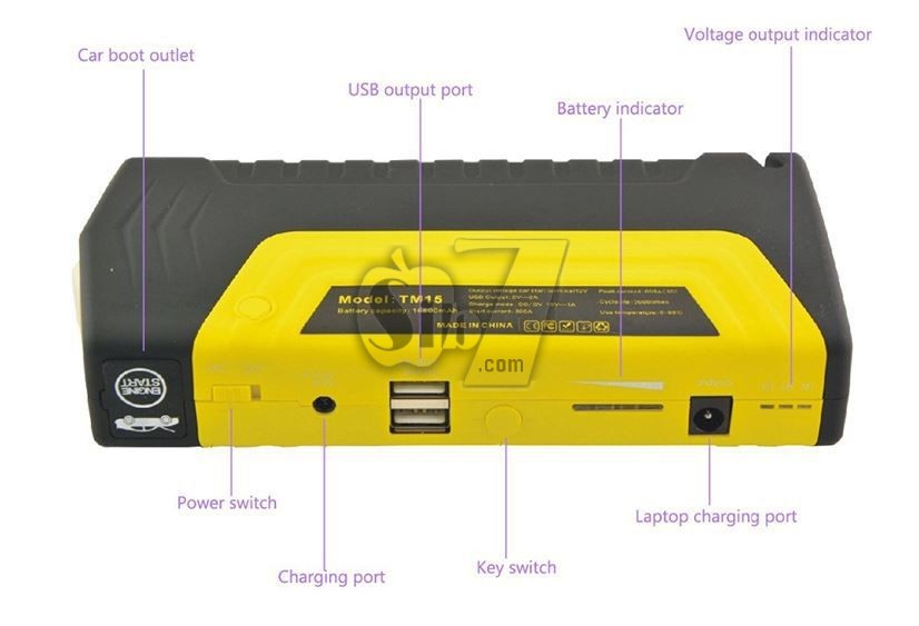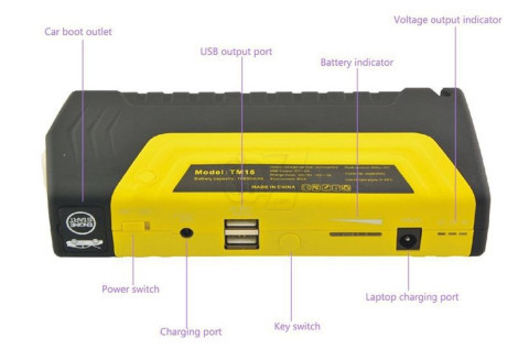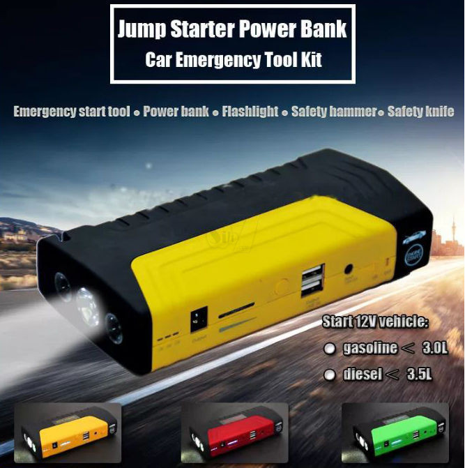 Power Bank can Jump Start your light vehicle and inflate car's tires, charge your tablet, smart phone or other USB powered devices and have LED Emergency lightning and Flashlight! A powerful compact and convenient one of a kind charge-everything device that fits inside your pocket or glove compartment of your vehicle
