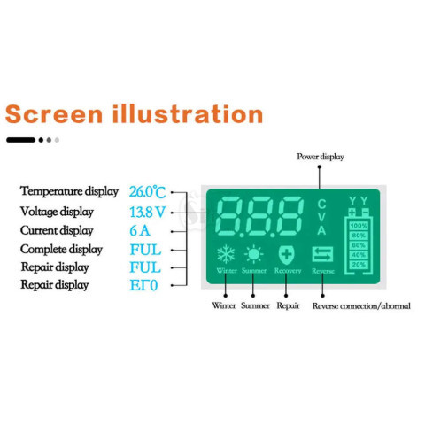 6. “Repair” mode - can be used to activate old batteries that have not been used for a long time or are unable to accept a charge.