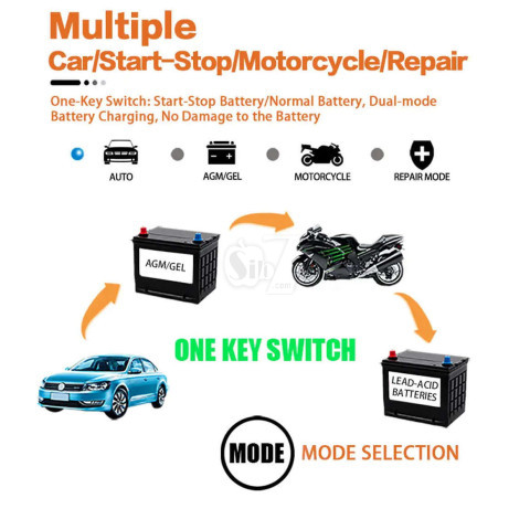5. "Moto" mode is suitable for all types of 12 volt motorcycle batteries, with a capacity of 2 to 15 amp-hours.