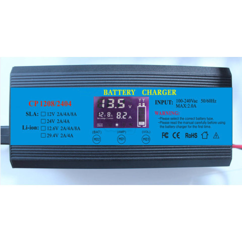 CP1208/2404 12 and 24 Volt Li-ion and Lead Acid Smart Battery Charger with Adjustable Current